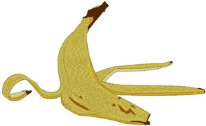 This design was created by request from Adam, a member of a stunt team. The upside down banana peel represents slapstick stunts. You learn something every day, don't you?