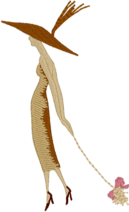 I couldn't resist digitizing this stylish lady out walking her little hairy (breed indeterminate) pooch! Her designated Pooper Scooper is not included in this scene.