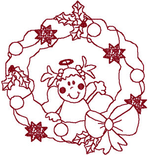 Christmas Machine Embroidery Designs: Redwork Holiday Wreath with Little Angel