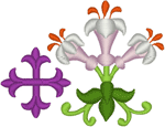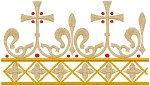 Though many of the beautiful borders in this category were created specifically for embroiderering on vestments, they are gorgeous and inspiring on any church linens. Many of them were originally offered to the public as iron-on embroidery transfers in the mid to late 1800s in the The Embroidery Pattern Catalogue, published by the Thomas Brown & Sons company of Manchester, England. Many of those traditional Christian patterns were hand drawn reproductions of designs from the 13th and 14th centuries, a period when ecclesiastical art, especially the stunning English needlework, was in its glory.